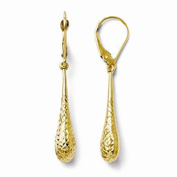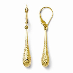 14k Yellow Gold Diamond-cut Dangle Leverback Earrings