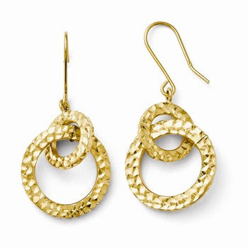 14k Yellow Gold Diamond-cut Dangle Shepherd Hook Earrings