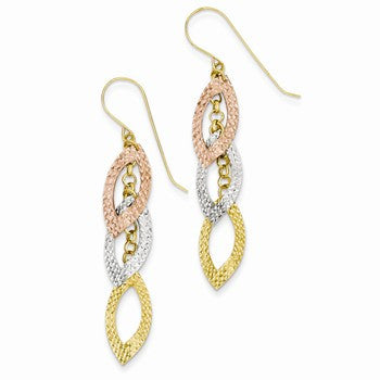 14k Yellow Gold Diamond-cut Tri-color Tear Drop Shepherd Hook Earrings