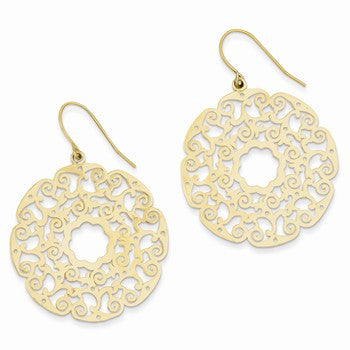 14k Yellow Gold Fancy Lace Filigree Dangle Earrings