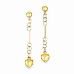 14k Yellow Gold Hollow, Polished, Puffed Heart Dangle Post Earrings