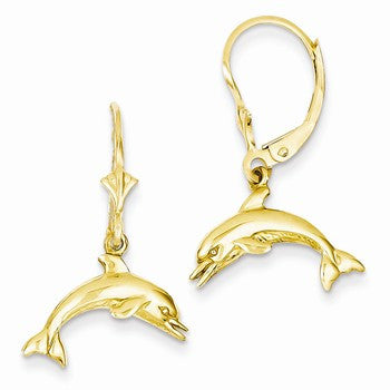 14k Yellow Gold Jumping Dolphin Leverback Earrings