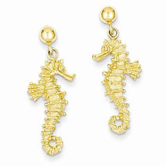 14k Yellow Gold Large Seahorse Dangle Post Earrings