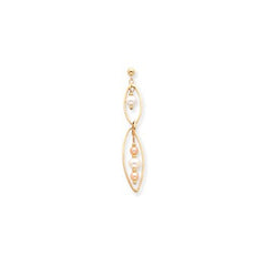 14k Yellow Gold Pearl and Geometric Shape Post Dangle Earrings