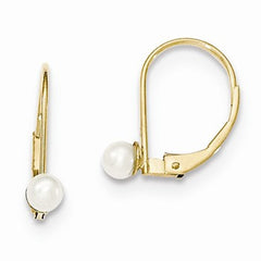 14k Yellow Gold Pearl Leverback Earrings