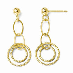 14k Yellow Gold Polished and Textured Post Dangle Earrings