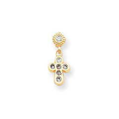 14k Yellow Gold Polished CZ Cross Dangle Post Earrings