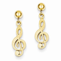 14k Yellow Gold Polished Diamond-Cut Treble Clef Dangle Post Earrings