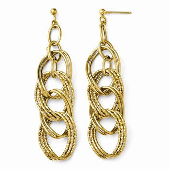14k Yellow Gold Polished Textured Fancy Post Dangle Earrings
