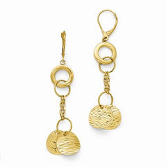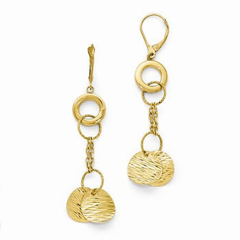 14k Yellow Gold Polished Textured Leverback Earrings