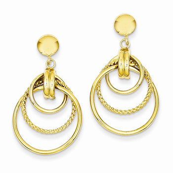 14k Yellow Gold Polished Twisted 3 Circle Fancy Post Earrings