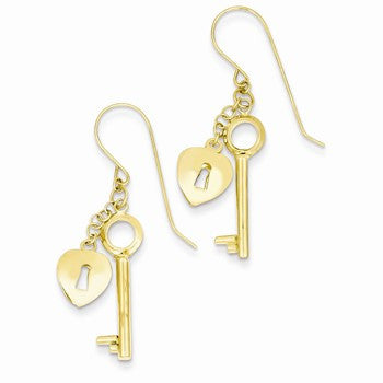 14k Yellow Gold Puff Heart Lock and Key Earrings
