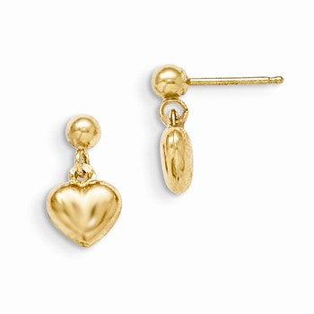 14k Yellow Gold Puffed Heart Dangle Earrings