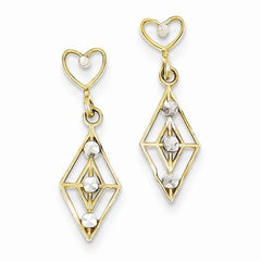 14k Yellow Gold Rhodium Dangling Diamond Shape Heart Post Earrings