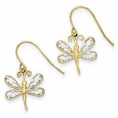 14k Yellow Gold Rhodium Diamond-cut Dragonfly Shepherd Hook Earrings