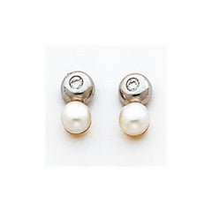 14k Yellow Gold Rhodium Plated Cultured Pearl CZ Earrings