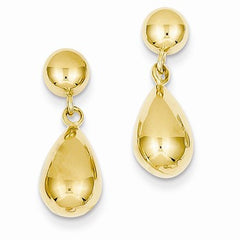 14k Yellow Gold Teardrop Hollow Post Dangle Earrings