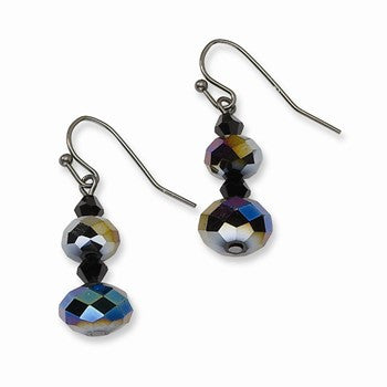 Black-plated Aurora Borealis Black Glass Beads Dangle Earrings
