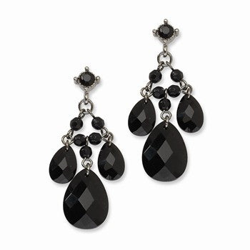 Black-plated Black Glass Acrylic Beads Post Dangle Earrings