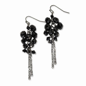 Black-plated Black Glass Beads Cluster Dangle Earrings