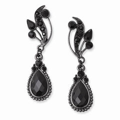 Black-plated Black Swarovski Elements Post Dangle Earrings