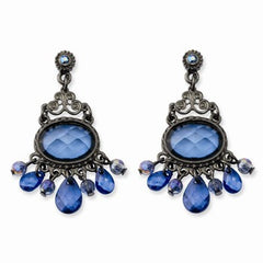 Black-plated Blue Glass Stone Beads Chandelier Post Earrings