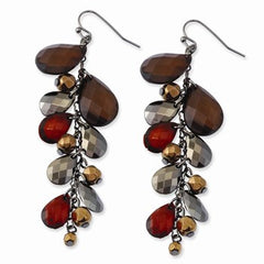 Black-plated Brown Hematite Glass Acrylic Bead Dangle Earrings