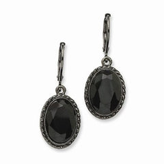 Black-plated Faceted Jet Acrylic Stone Leverback Earrings