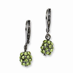 Black-plated Green Glass Stones Leverback Earrings