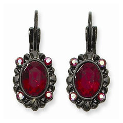 Black-plated Red Aurora Borealis Glass Stones Leverback Earrings