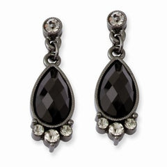 Black-plated Smokey Black Crystal Teardrop Post Dangle Earrings
