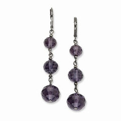 Black-plated Smokey Purple Glass Beads Dangle Leverback Earrings