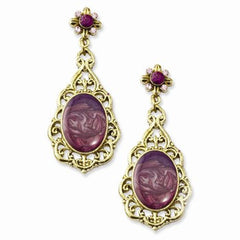Brass-tone Purple Crystal Enamel Post Dangle Earrings
