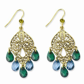 Brass-tone Teal Green Acrylic Beads Dangle Earrings