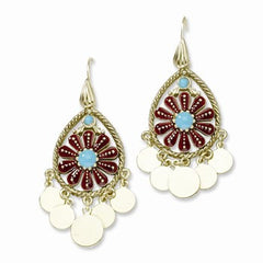 Brass-tone Teal Red Enamel Fancy Teardrop Dangle Earrings