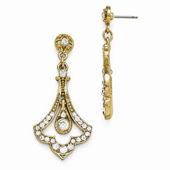 Gold-tone Clear Glass Post Fleur Drop Earrings