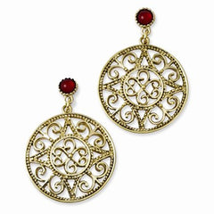 Gold-tone Red Acrylic Stone Post Dangle Earrings