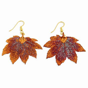 Iridescent Copper Dipped Full Moon Maple Leaf Dangle Earrings
