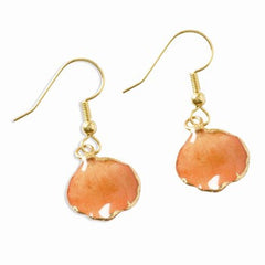 Lacquer Dipped 24k Gold Trim Orange Rose Petal Dangle Earrings