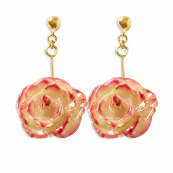 Lacquer Dipped Cream Fuchsia Rose Dangle Earrings