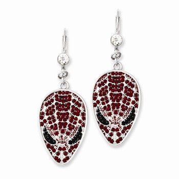 Marvel Comics Silver-tone Spiderman Red Crystal Leverback Earrings
