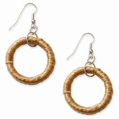 Silver-tone Carmel Ribbon Rattan Circle 2.25in Dangle Earrings