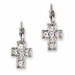Silver-tone Clear Crystal Crosses Leverback Earrings