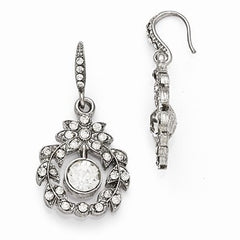 Silver-tone Clear Glass Fishhook Dangle Earrings