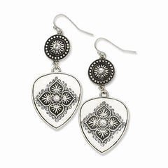 Silver-tone Clear Glass Stone Floral Motif Dangle Earrings