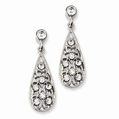 Silver-tone Crystal Teardrop Post Dangle Earrings