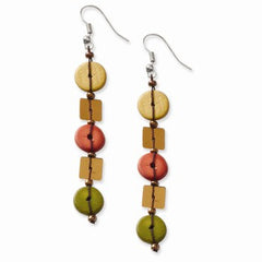 Silver-tone Green/Red/Brown Hamba Wood Sequin 3in Dangle Earrings