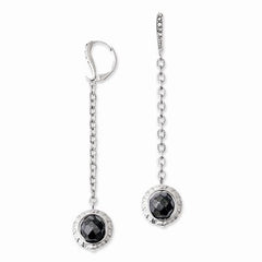Silver-tone Hematite Clear Crystal Dangle Leverback Earrings