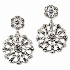 Silver-tone Hematite Crystal Scalloped Post Dangle Earrings