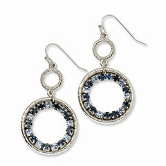 Silver-tone Lt/Dk Blue Crystal Circle Drop Earrings
